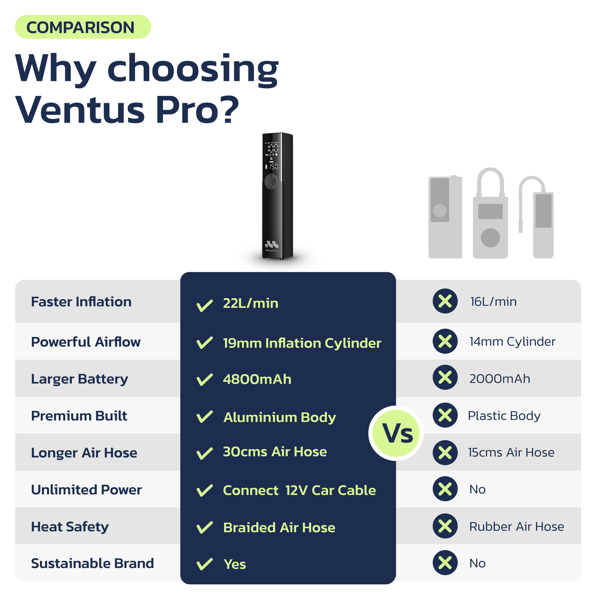 Ventus Pro handles precise inflation while the sealant instantly seals punctures on the spot, so you’re never stuck again.