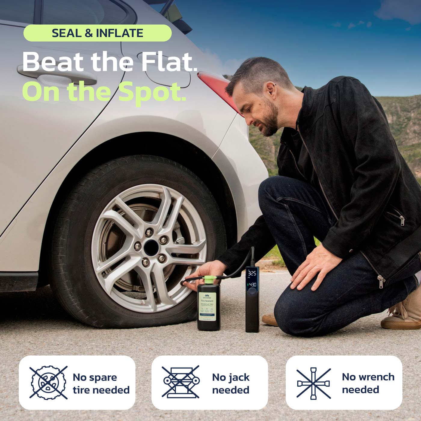 Meet the ultimate roadside fix: the Ventus Pro Smart Pump plus our fast-acting Tire Sealant — together, they make the complete flat tire repair kit for any driver.